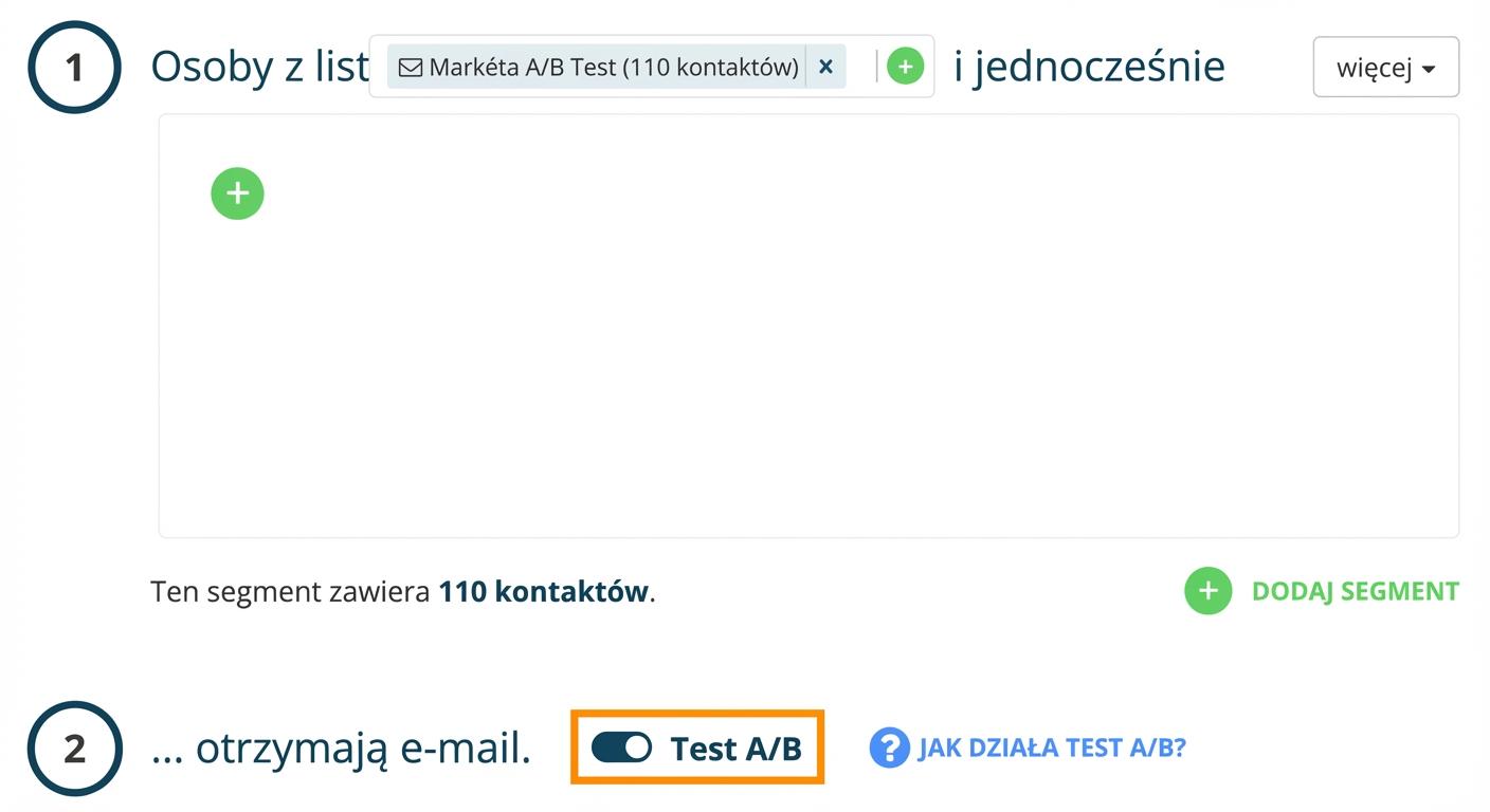 Aktywuj w targetowanej kampanii e-mailowej (newsletterze) opcję Testów A/B w szczegółach kampanii.