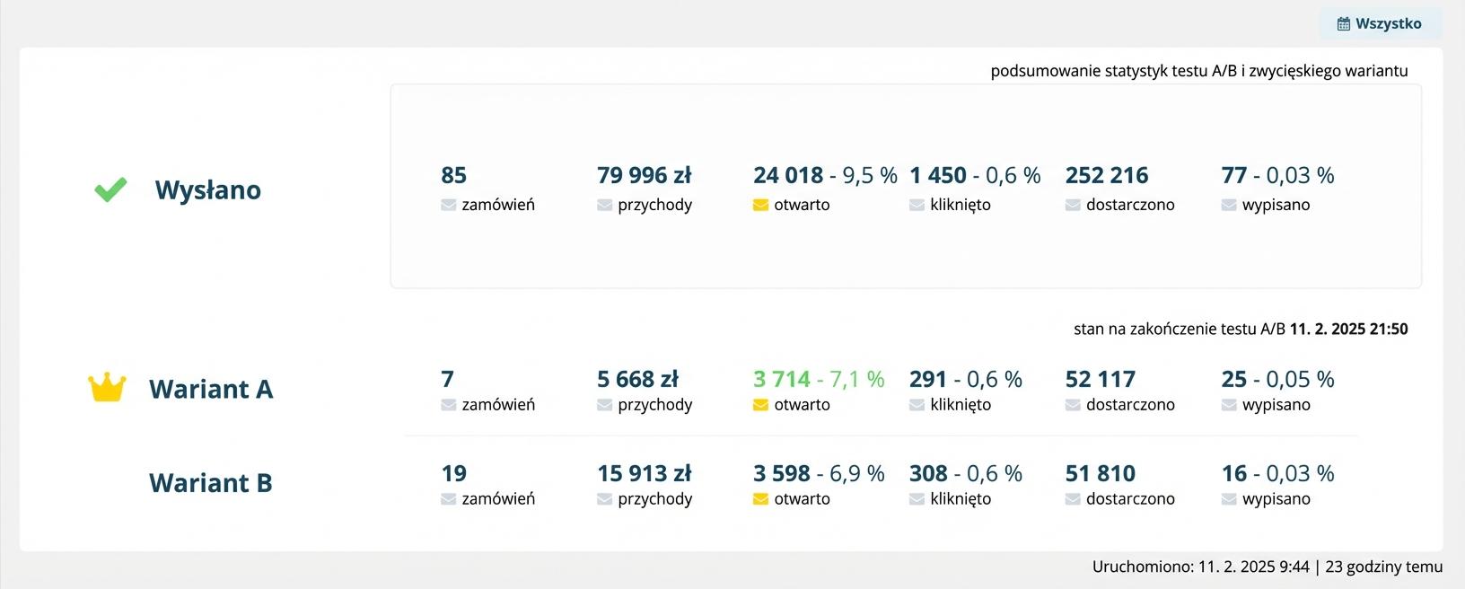 Wyniki obu wersji, jak również całej kampanii, znajdziesz w jej szczegółach.