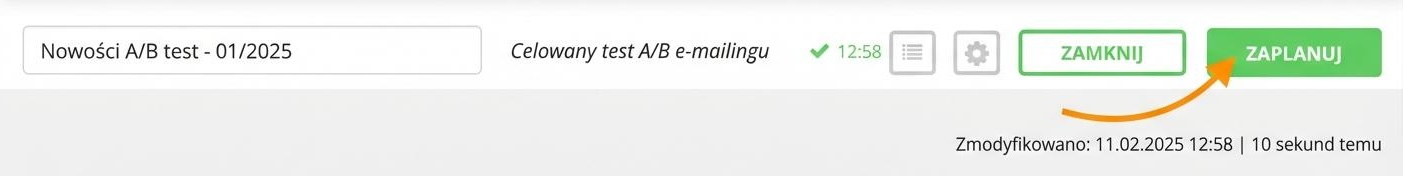 - W szczegółach targetowanej kampanii e-mail (newslettera) włącz opcję Testy A/B.