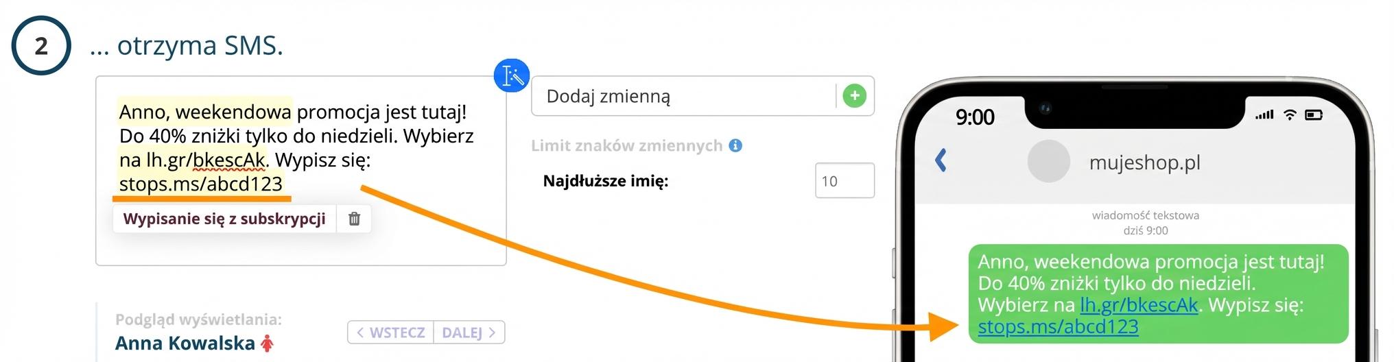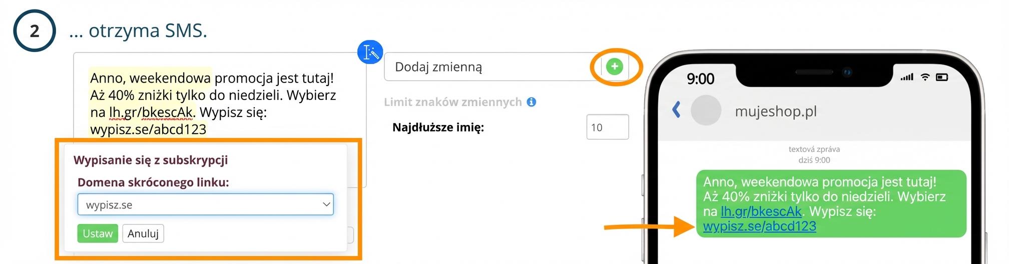 Link rezygnacji z subskrypcji wstawisz do kampanii SMS jako zmienną.