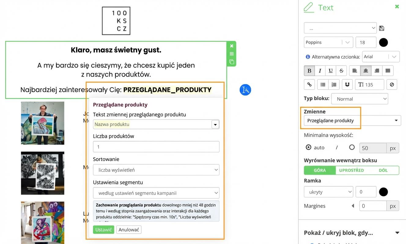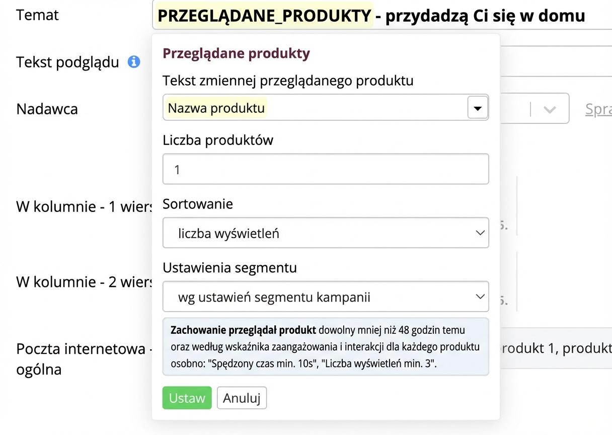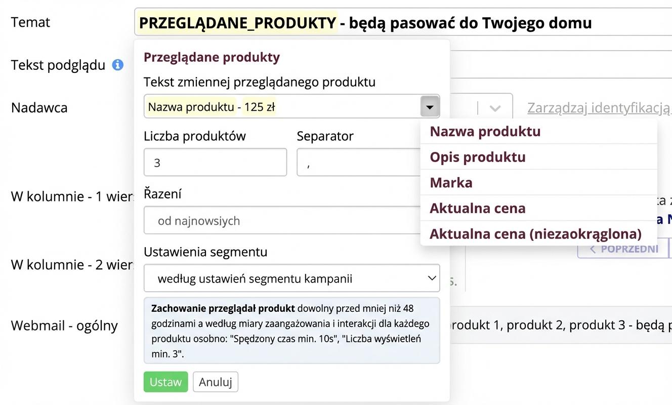 Jak wstawić zmienne do kampanii Przeglądane produkty