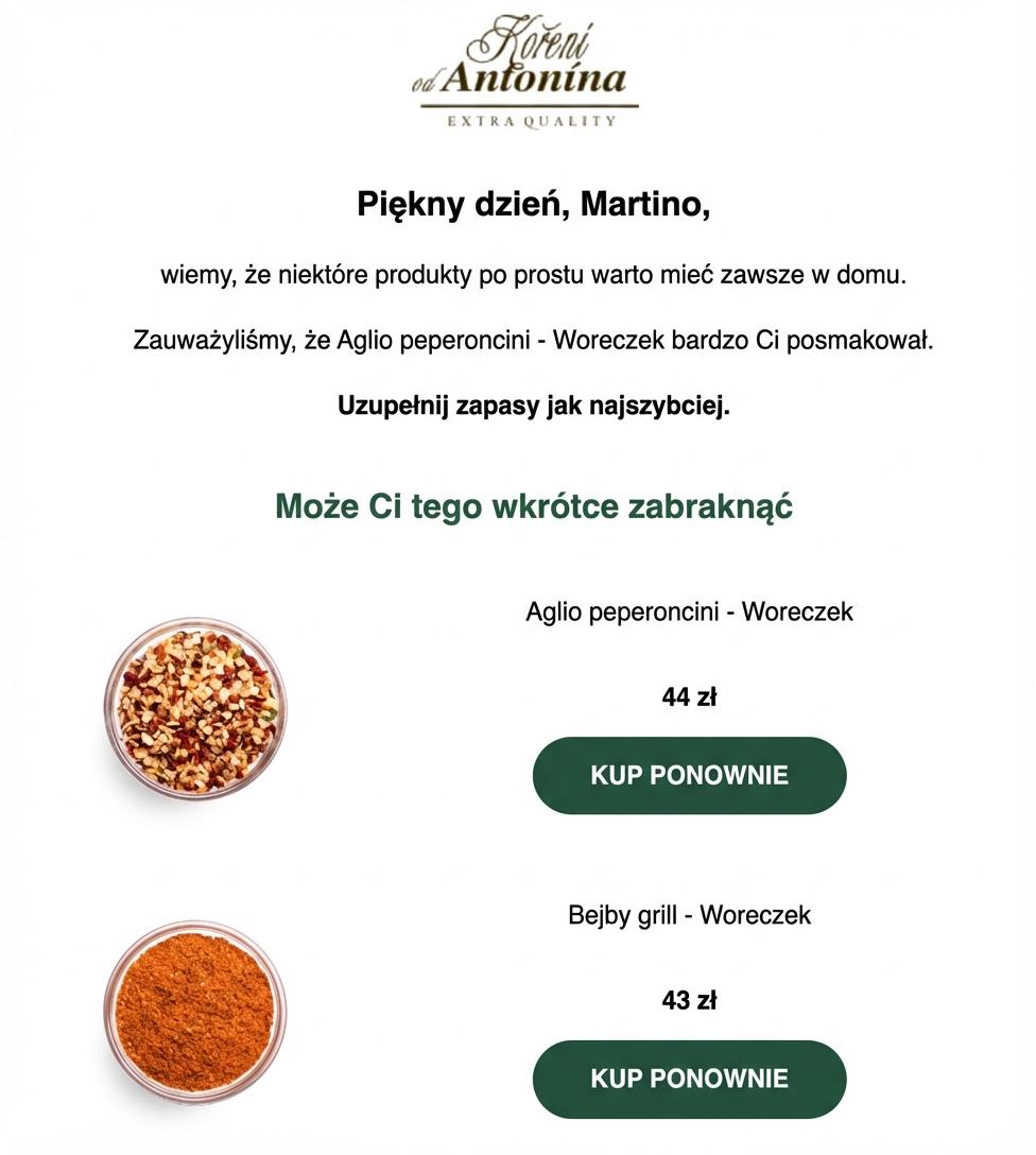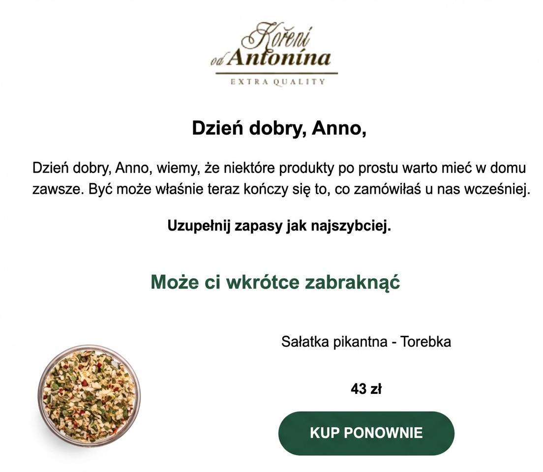 W kampanii przypominającej o Kończące się produkty łatwo wstawisz nazwę (a także cenę) kończącego się produktu do: