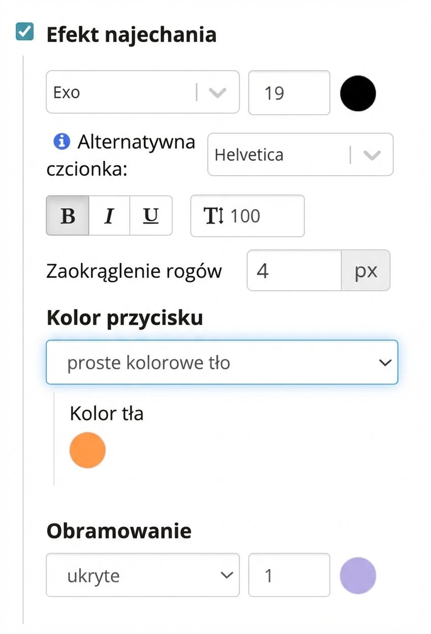 Po zaznaczeniu checkboxa "Efekt hover" pojawią się opcje stylizacji przycisku z tym efektem: