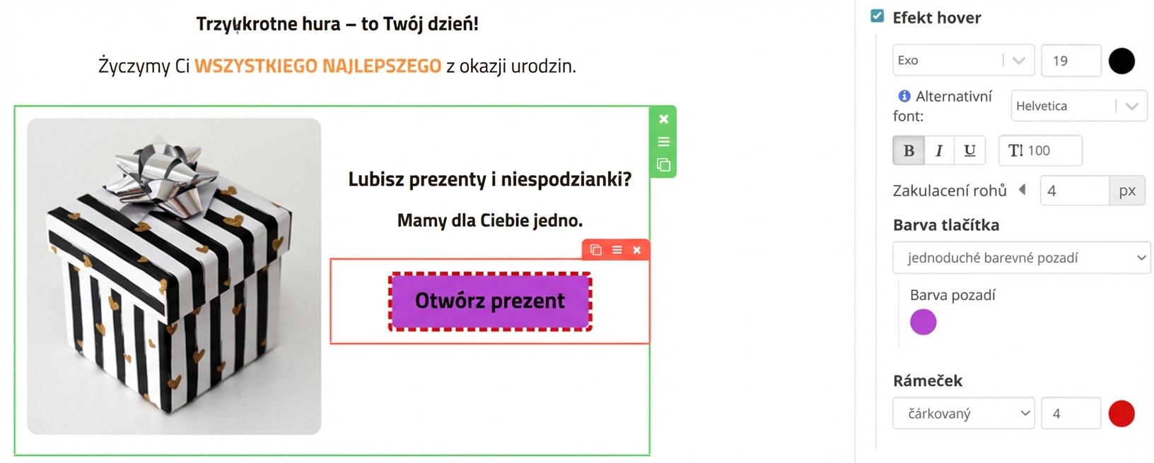 Efekt hover można aktywować na dowolnym elemencie „Przycisk".