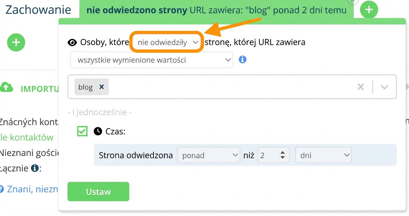 - Wysyłanie artykułów blogowych wyłącznie do kontaktów, które w określonym okresie (nie) były na blogu.