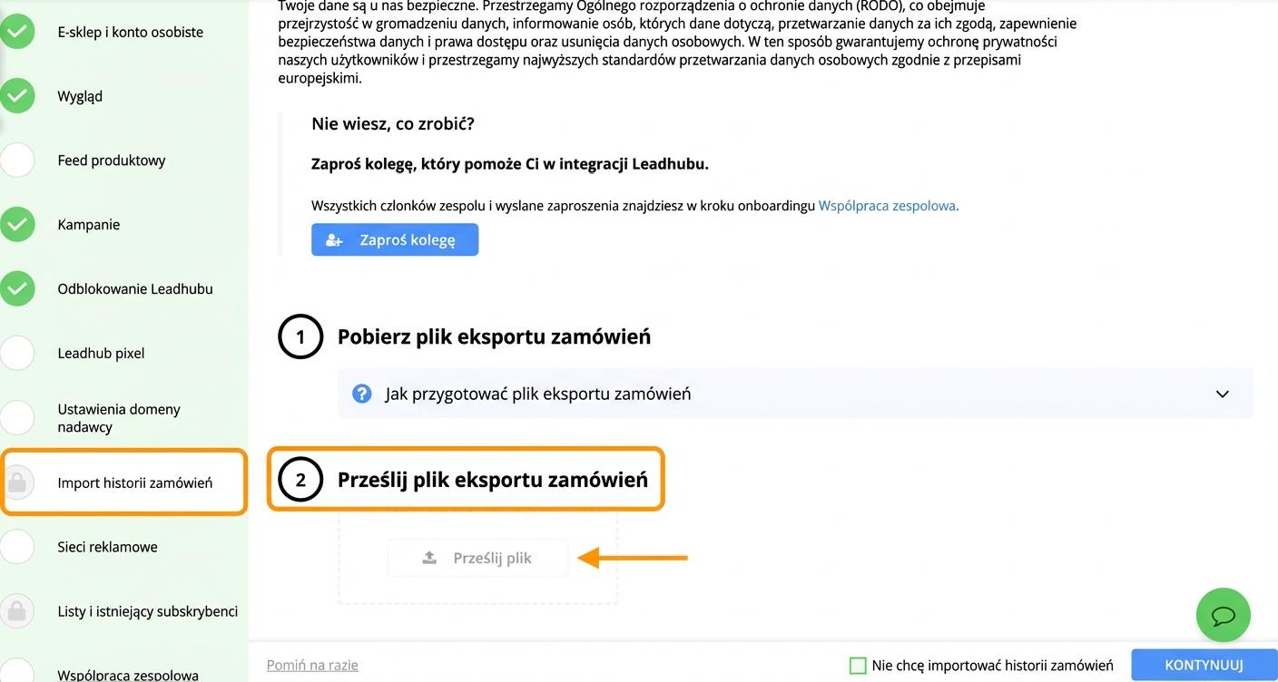- wyeksportować historię zamówień i zaimportować ją do Leadhubu
